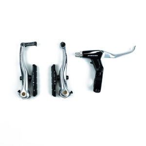 The Answer Pro V-brake kit includes everything you need for a complete brake installation. It features forged aluminum brake arms with brass pivot bushings, threaded brake pads with curved profile for maximum rim contact, a 67″ long brake cable for plenty of adjustment room, Answer Pro V-brake lever and all necessary hardware. Designed for pro size race frames.